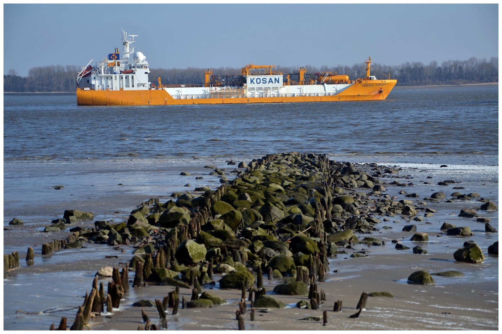 5. Sehr schöne Bilder. Ich kenne die Gegend ja leider gar nicht. Was mich immer wieder erstaunt (auch zuvor schon auf deinen anderen Bildern zu sehen), wie nahe am Ufer die Riesenkähne zu fahren scheinen. Es sieht für mich immer so aus, als ob sie völlig flach und ohne jeglichen Tiefgang AUF dem Wasser lägen! Wahnsinn!