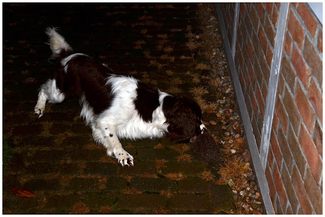 bei uns im Garten. Herrchen wollte mit mir kurz vorm Schlafengehen noch mal