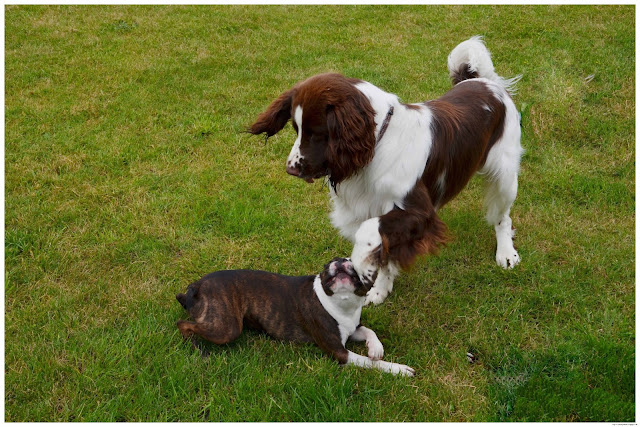 AntwortenLöschenDeine neue Freundin, die Emma, scheint mir eine lustige und sympathische Spielgefährtin zu sein, eine, mit der man auch als Rüde richtig Spaß haben kann! Der "skeptische" Blick ist einmalig! Zu nett!