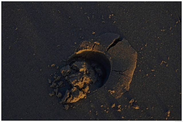 Nee, nicht das. Das ist mein Pfotenabdruck im Sand